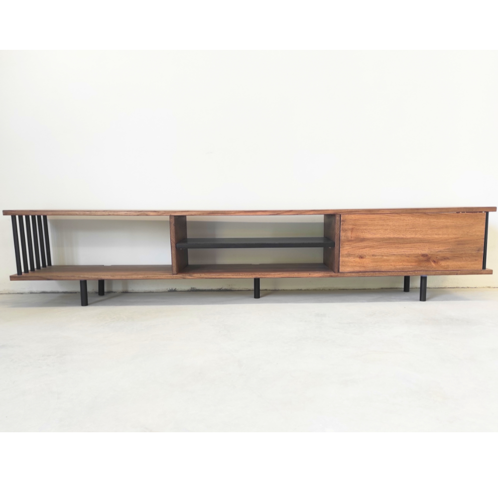 Szafka rtv Ripa to projekt idealnie dopasowany do stylu loftowego. Jej dekoracyjne metalowe elementy dodają elegancji i podkreślają minimalistyczny design. Dzięki nim szafka prezentuje się nie tylko funkcjonalnie, ale również estetycznie.